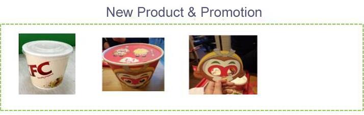 KFC pe hârtie majore furnizor de containere în piaţa din China, capacitatea de inovare de Pando a oferit o sursă inevitabilă de localizare pentru KFC. În 2014-2015, Pando a dezvoltat cu succes unele soluţii de ambalare foarte inovatoare pentru KFC, inclusiv: ştanţare ceaşcă de cafea, partaja farfurie, cana de supa, castron congee şi etc. Ceaşcă de cafea Arabica 1. speciale usoare de hârtie ca stratul exterior, care este produs de fibre lungi și cu elasticitate inalta. Ar putea fi relief pentru orice stil cu uşurinţă. 2. folosi mai putin material de hârtie (doar 150g) să fie mult mai ecologic. 3. customize ştanţare ca logo-ul clientului sau alte design.